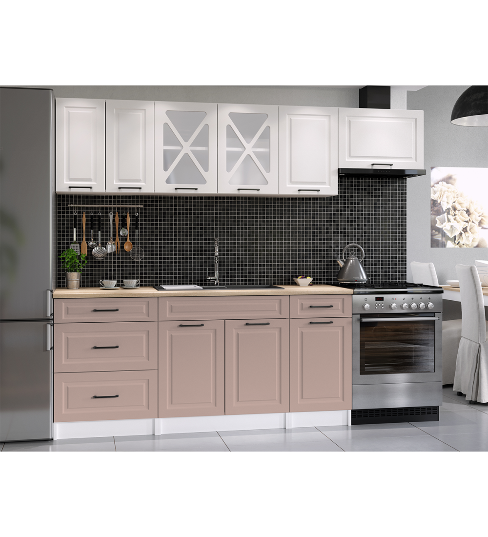 Kuchyňská linka SIMONE SCANDI 240/180 růžově béžová + bílá