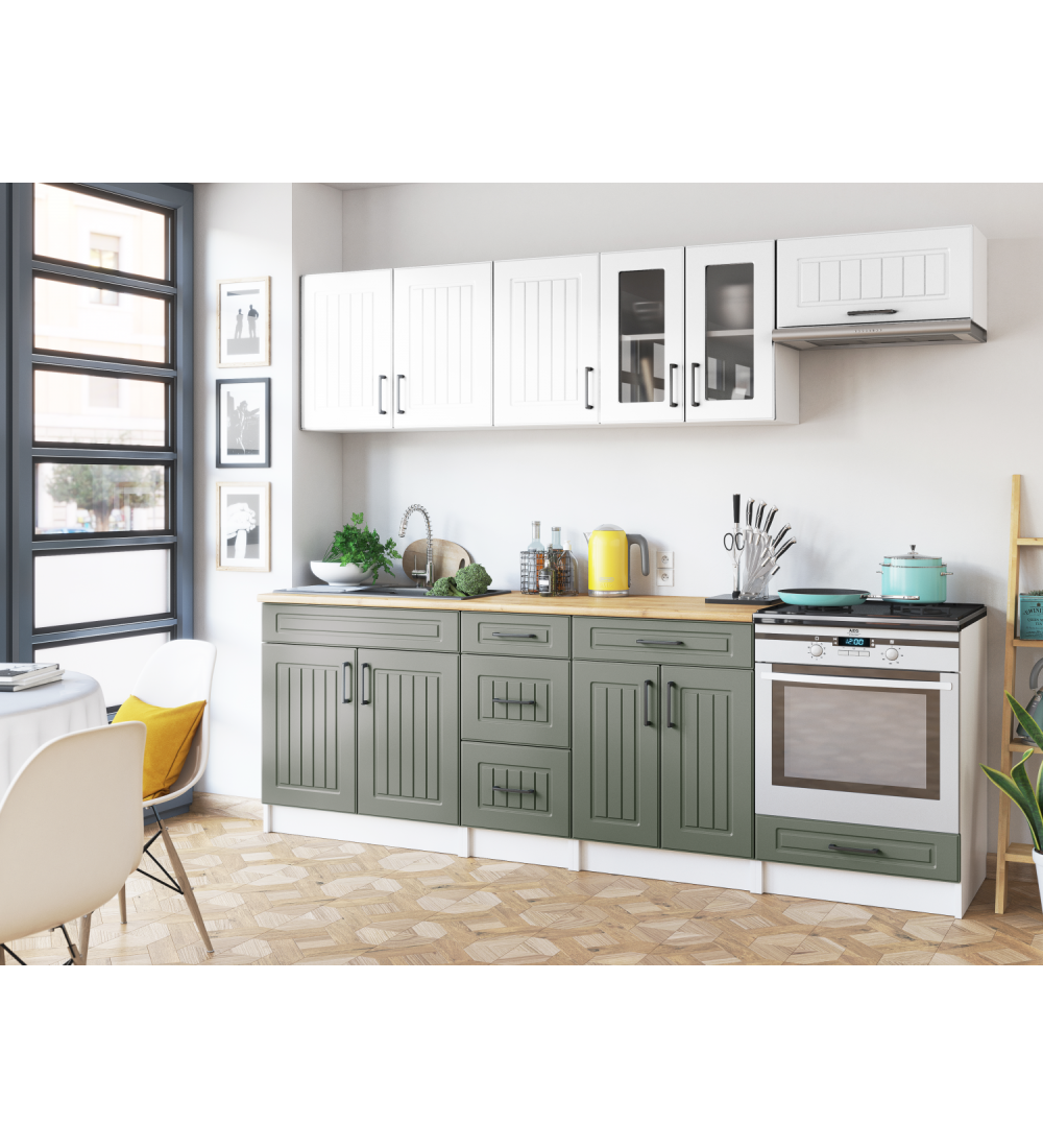Kuchyňská linka BERTA SCANDI 240/240 bílá + zelená varianta 2