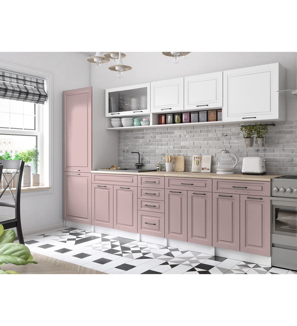 Kuchyňská linka BURO SCANDI 300cm bílá + růžově béžová