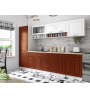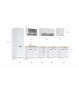 • Horní skříňky namontované na nastavitelných závěsech (pro každou závěsnou skříňku jsou zahrnuty 2 kusy bodových montážních lišt)