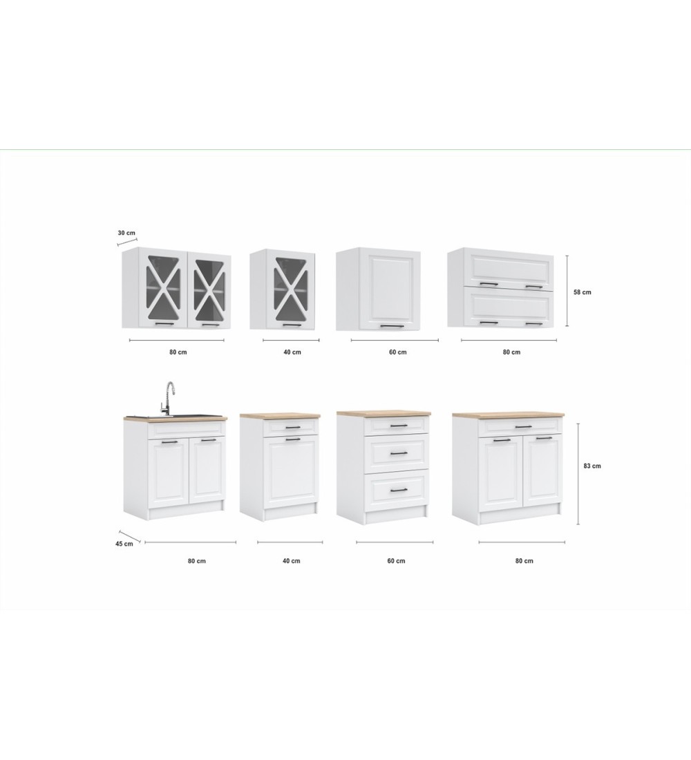 Kuchyně HALINA je jednoduchá, elegantní a zároveň moderní sestava kuchyňských skříněk, vyrobená ve velmi oblíbeném skandinávském stylu. Tato sestava se skládá z 8 samostatných skříní, které lze libovolně konfigurovat, což poskytuje maximální využitelnost a svobodu uspořádání.