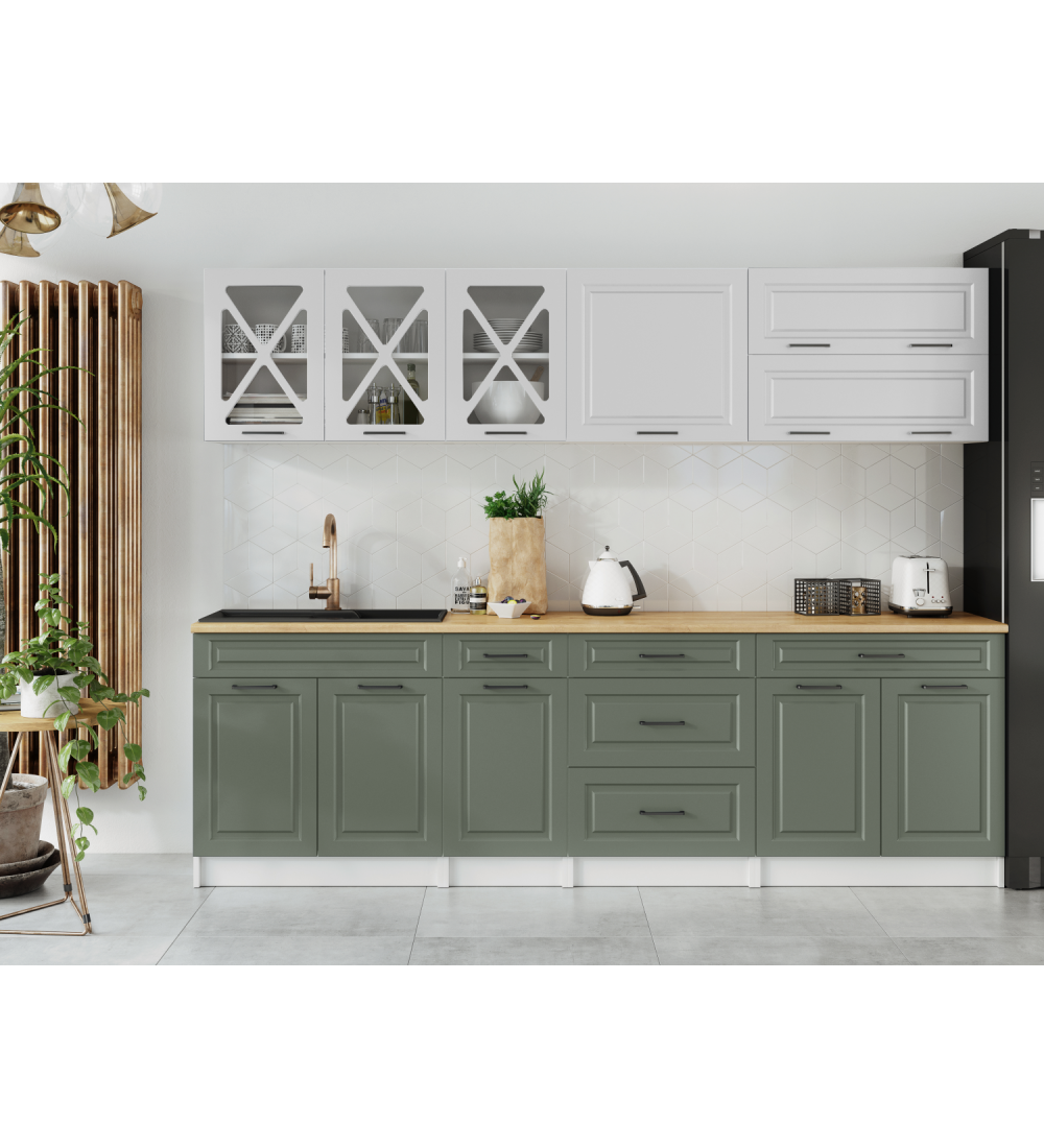 Kuchyňská linka HALINA SCANDI 260cm bílá + zelená varianta 2