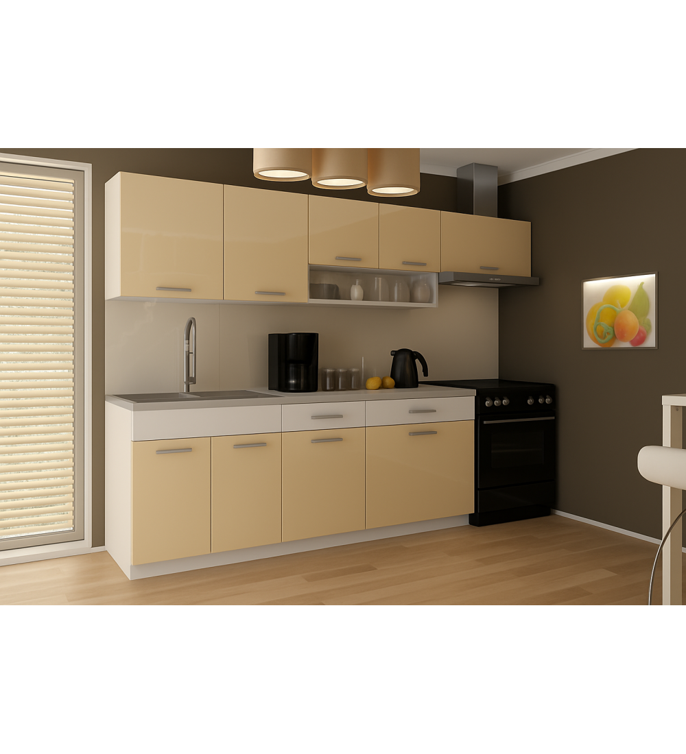 Kuchyňská linka SIMONA LUX 240/180 vanilka + bílý lesk