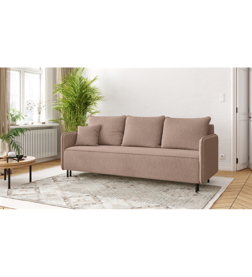 Pohovka vděčí za svůj komfort používání rozsáhlé struktuře sedáku a opěráku, založené na pružinách Bonnell a měkké a husté potahové pěně T-28. Pohovka získává dojem měkkosti a neuvěřitelné lehkosti především díky čalounění v podobě manšestrového materiálu. Jemný proužek je nejmódnější látkou této sezóny. Tato látka nejen působivě vypadá, ale je také velmi funkční. Pevný podklad a velmi vysoká odolnost proti odření zajistí, že vám nábytek z této látky bude sloužit dlouhá léta.