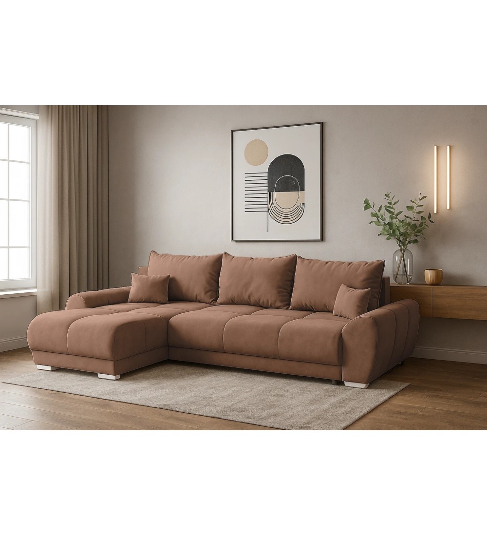 Rohová rozkládací sedačka EGON světle hnědá