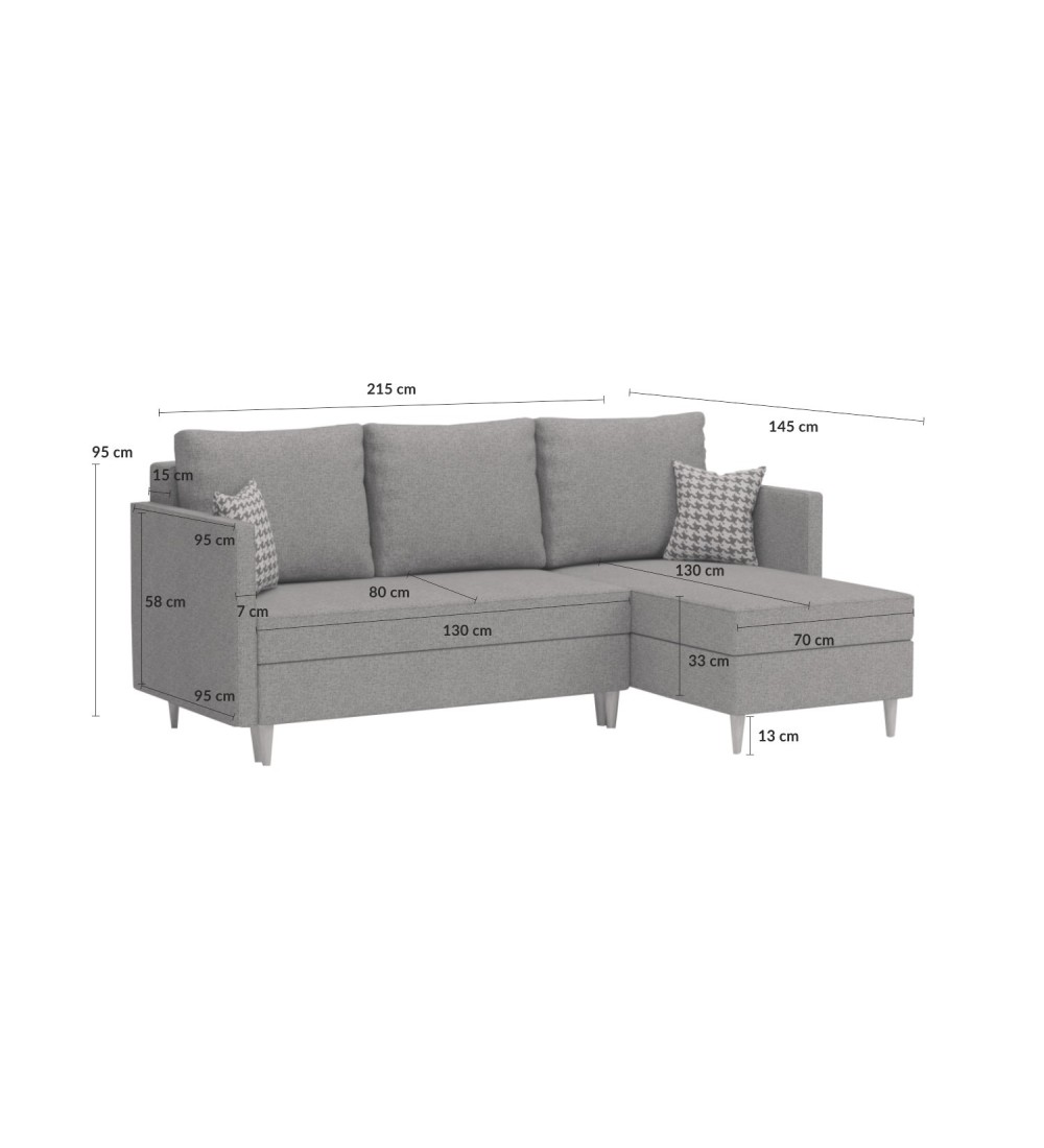 Rohová rozkládací sedačka HENOME je výbornou volbou do obývacího pokoje, protože je nejen součástí vybavení, ale především efektní dekorací interiéru. Pohodlné a moderní vám zaručí odpočinek v luxusních podmínkách. Relaxováním na něm po náročném dni získáte neuvěřitelné potěšení. Pohodlí v koutě má na svědomí použitá kvalitní čalounická pěna.