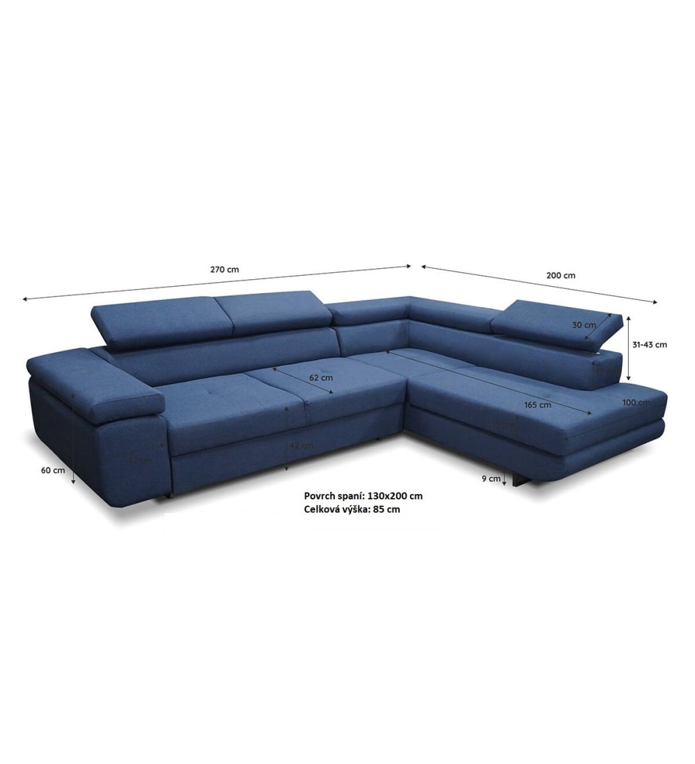 - Roh má nastavitelné opěrky hlavy a pohodlnou a prostornou loketní opěrku