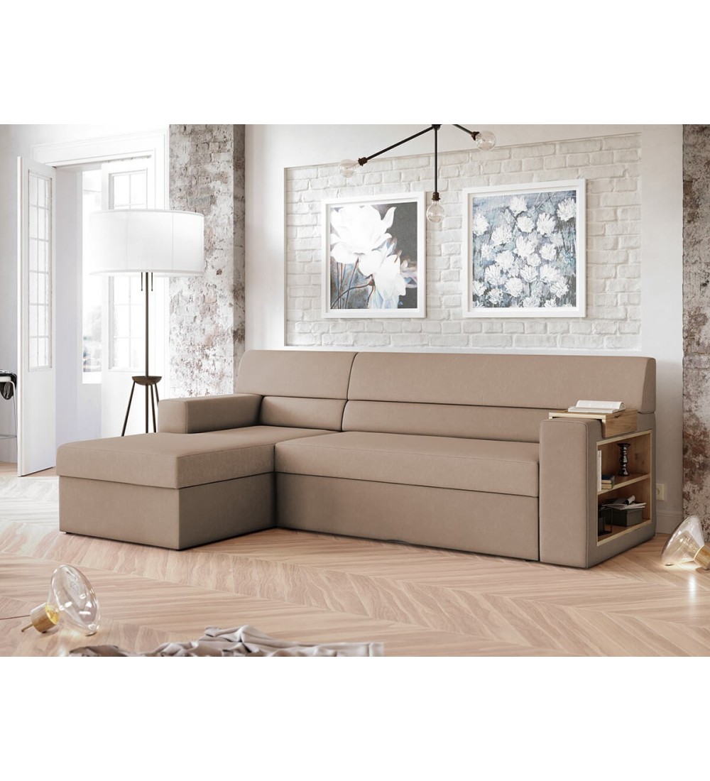 - Sedačka má na jedné ze stran vybrání s policí v barvě dub artisan