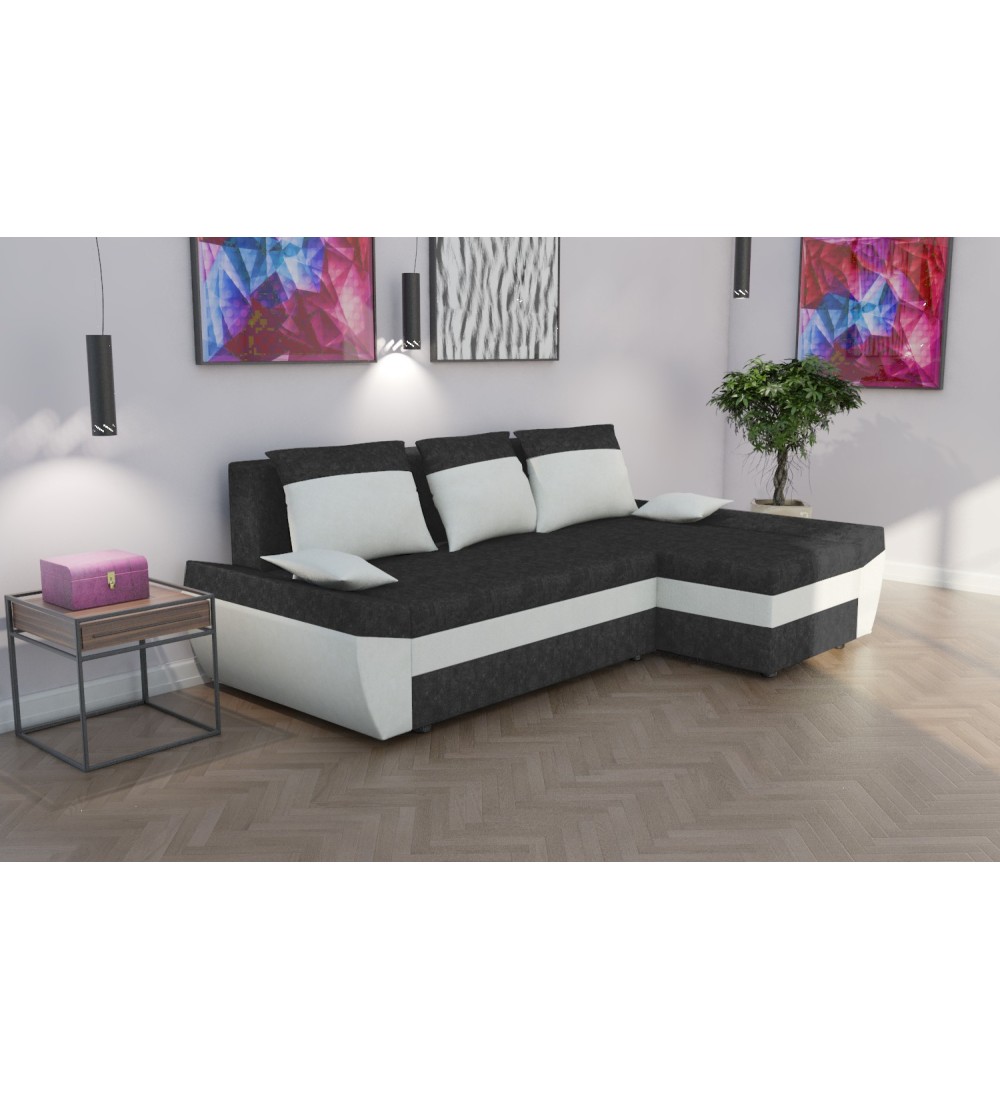 Rohová rozkládací sedačka TARO tmavěšedá-bílá