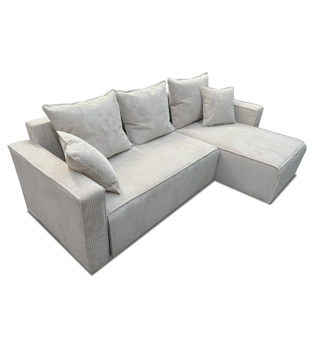 V rohu použitá manšestrová látka, mírně žebrovaná, je extrémně měkká a příjemná na dotek. Jeho jemná textura je zdůrazněna jemnými pruhy, které dodávají nábytku jedinečný texturní charakter. Není to jen sedák, ale i dekorativní prvek, který upoutá pozornost a vybízí ke chvilce odpočinku.
