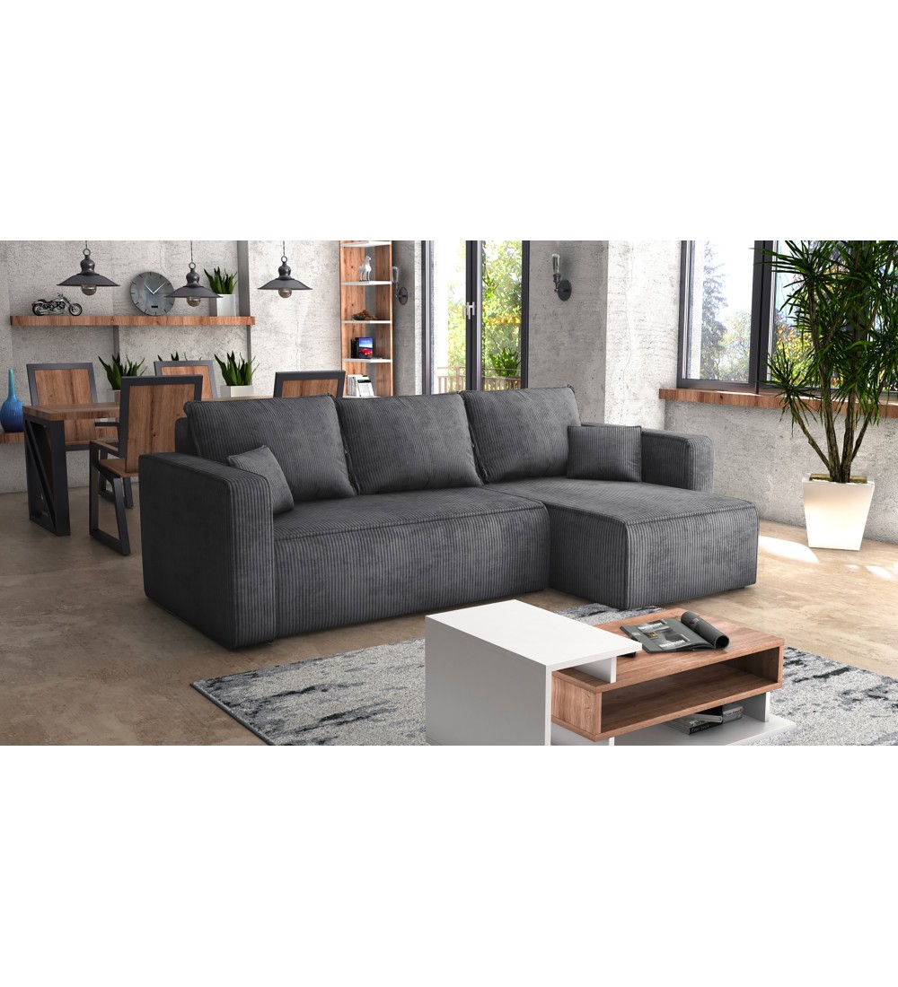 Rohová rozkládací sedačka FORESTO tmavě šedá - manšestrová látka