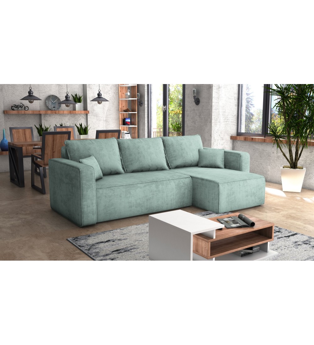 Rohová rozkládací sedačka FORESTO světle zelená - manšestrová látka
