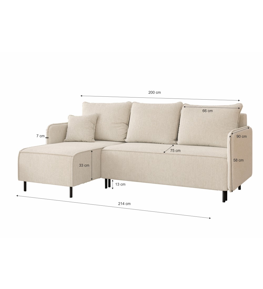 Rám pohovky je vyroben z vysoce kvalitního dřeva a zaručuje stabilitu a odolnost. Konstrukce postele je vybavena praktickou úložnou přihrádkou pod sedákem, která bezesporu zvyšuje funkčnost nábytku. Rohová sedací souprava má funkci spaní o rozměrech 140x200 cm, na kterou se pohodlně vejdou dvě osoby.