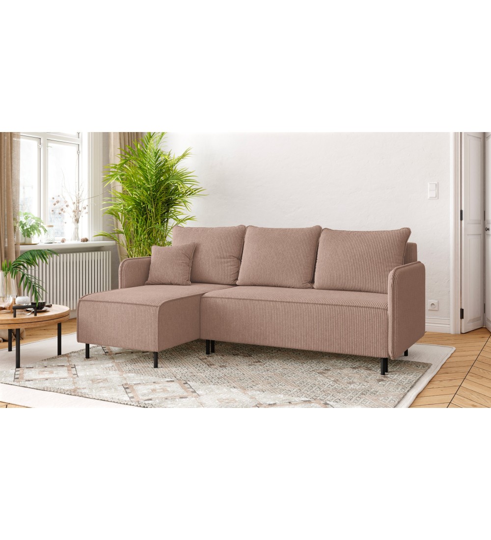 Hlavní předností rohové sedací soupravy VENOMO je extrémně odolná látka, která je i přes svůj nenápadný vzhled vysoce odolná proti opotřebení. Rohová pohovka je k dispozici až v 7 nejmódnějších barvách sezóny – od tmavých akcentů, jako je šedá a černá, až po jemnější odstíny – růžová, mátová, béžová a karamelová. Perfektně zvolená výplň zajišťuje pohodlí celé soupravy: pěna T-28 a bonellové pružiny, používané také v matracích do ložnice, zajišťují pohodlí a dlouhodobou odolnost.